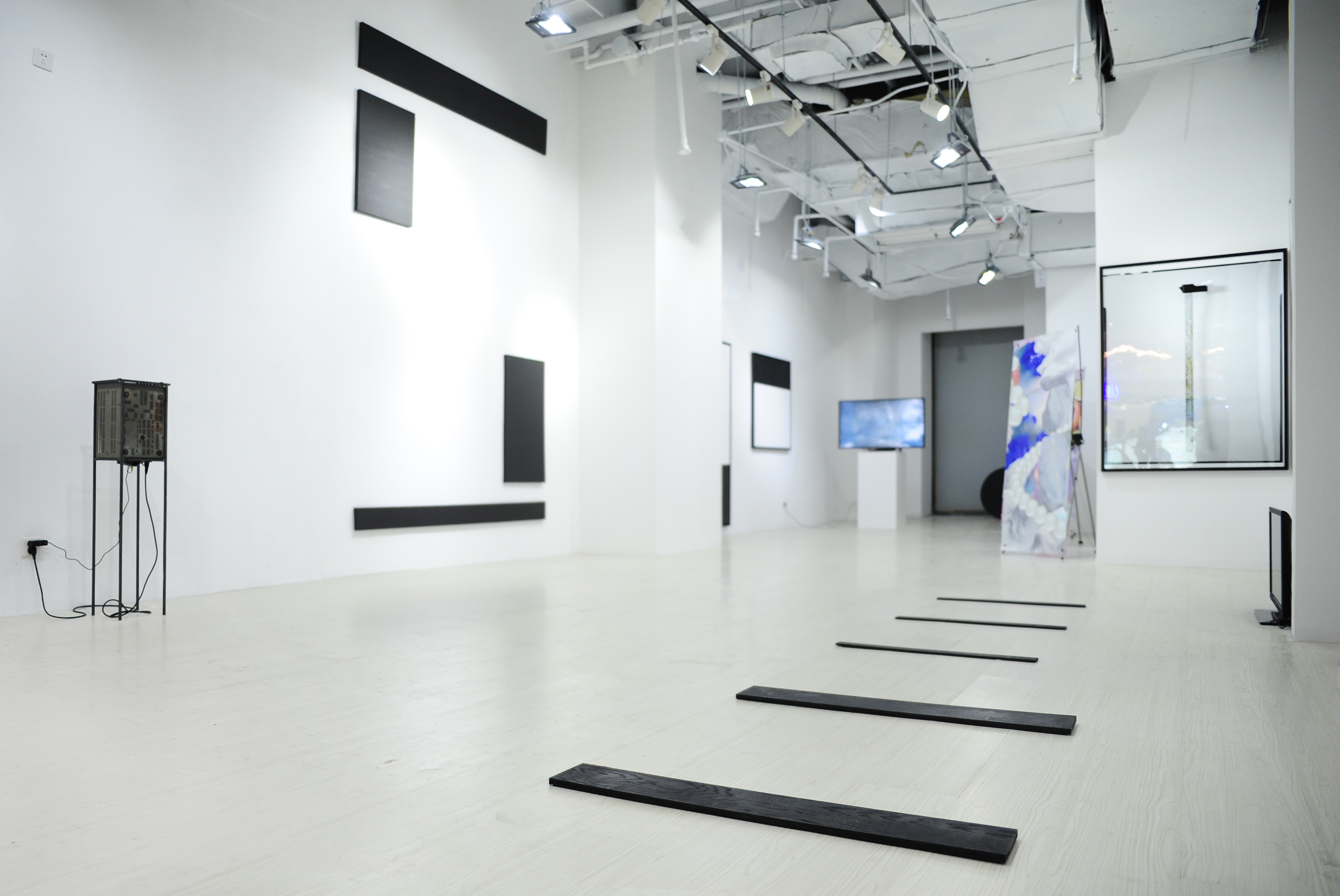 Installation view with works by (L-R) Zhang Xerui, Tan Ping, Ma Shuqing and Garcia Frankowski