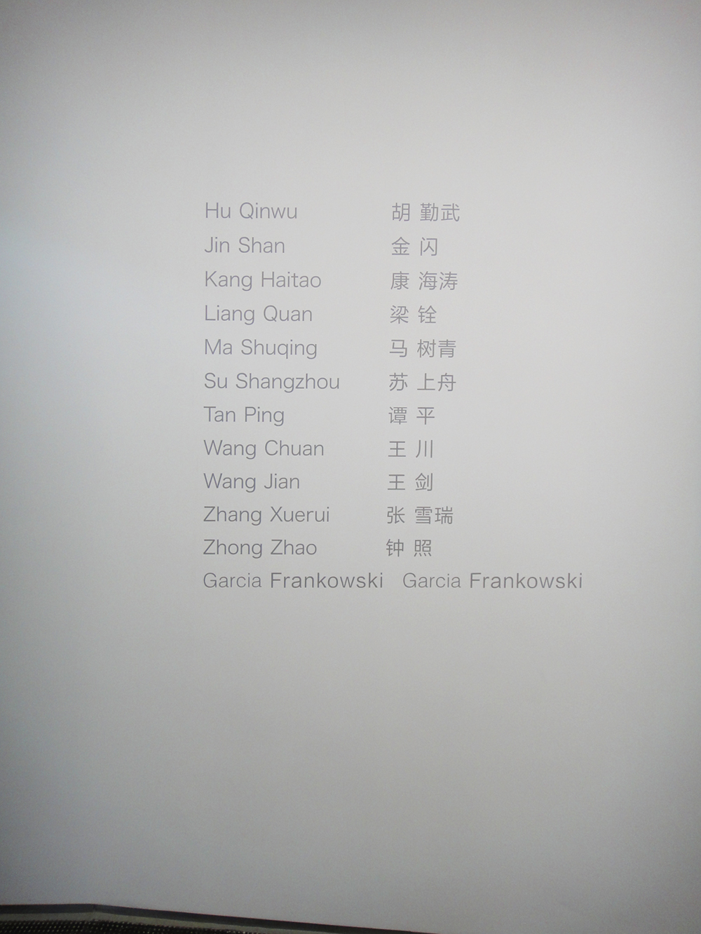 With Works by Hu Qinwu, Jin Shan, Kang Haitiao, Liang Quan, Ma Shuqing, Su Shangzhou, Tan Ping, Wang Chuan, Wang Jian, Zhang Xuerui, Zhong Zhao, Garcia Frankowski
